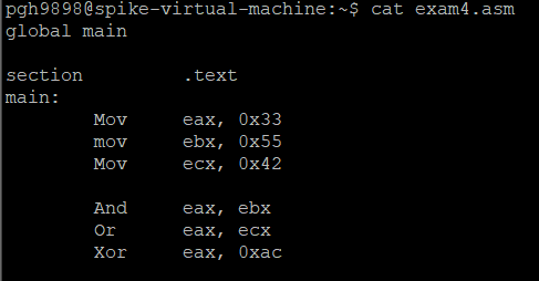 exam4.asm AND, OR, XOR mov eax, 0x33