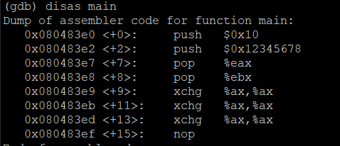 mov dword [ebx], 0x10 -> 0xbffff098곳에 0x10을 저장