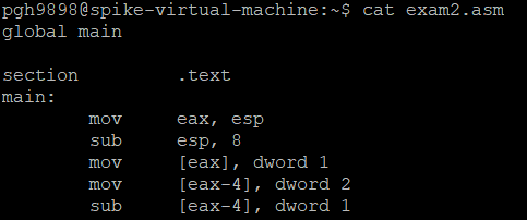 exam2.asm SUB mov eax, esp -> eax에 esp 값을 넣어줌