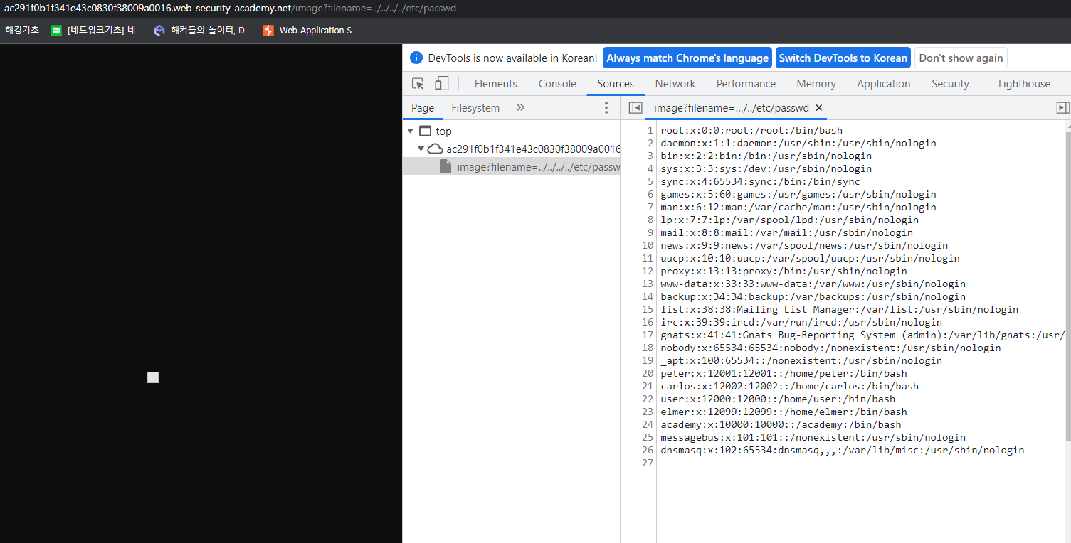 URL 창에 예상되는 위치로 ../../../../etc/passwd 를 쳐보았다.